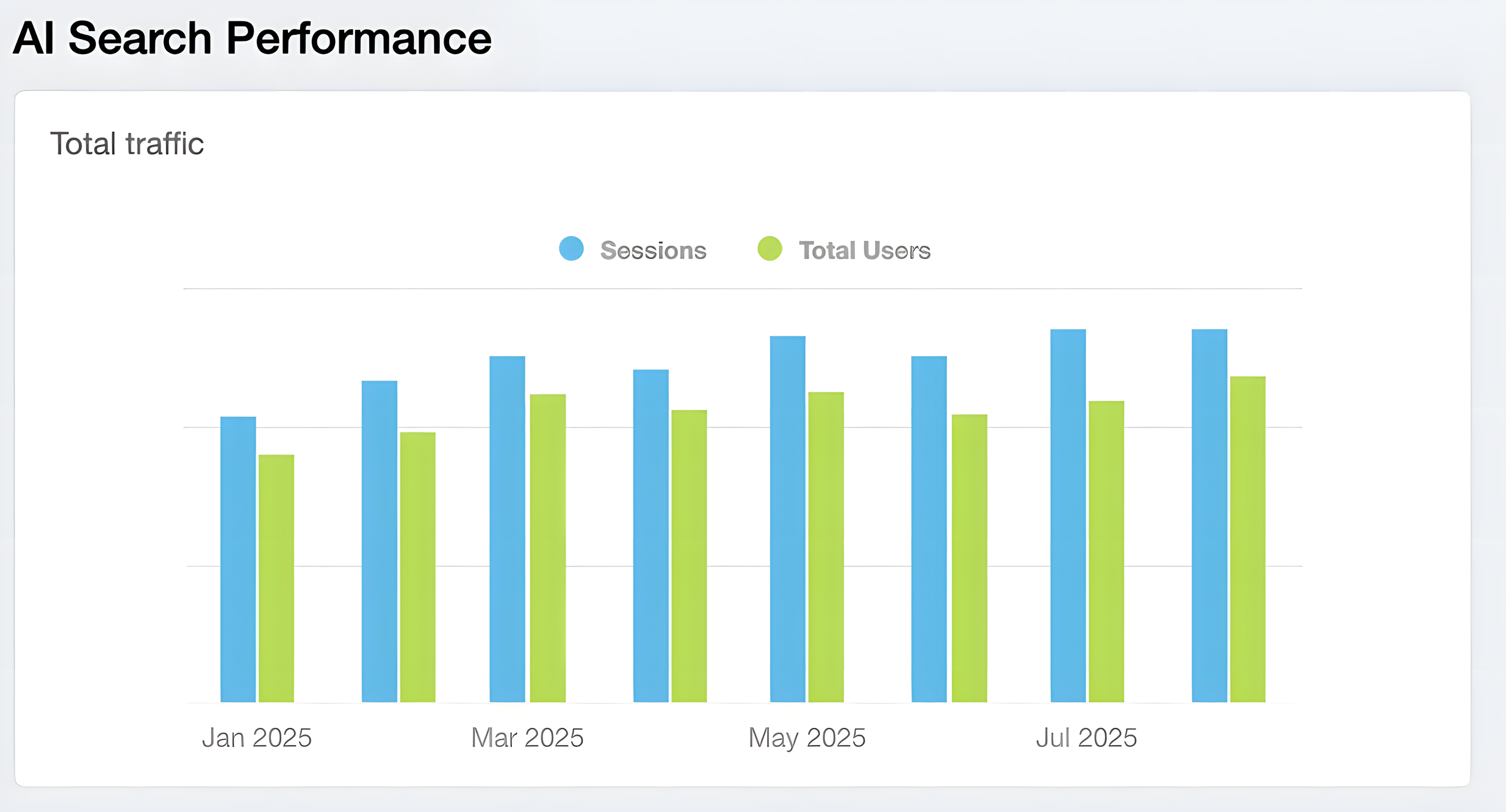 We set up real-time dashboards driving visibility into AI platforms (ChatGPT, Perplexity, etc) traffic performance. Using Vertology.ai, we revealed insights on LLMs top citation sources and designed the course of action for winning more mentions and recommendations on AI platforms.